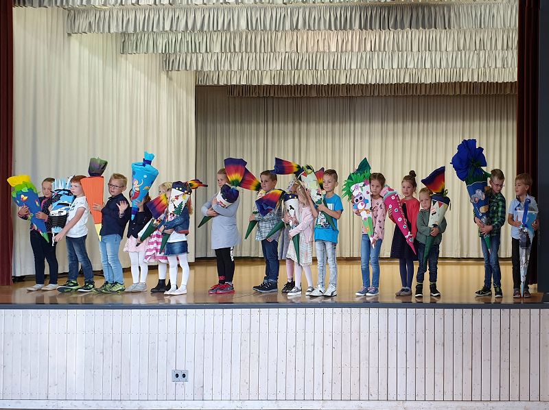 Ein Höhepunkt für die Kinder war am Ende der Feierlichkeiten die Überreichung der Schultüten durch die Viertklässler und die anschließende erste Unterrichtsstunde.